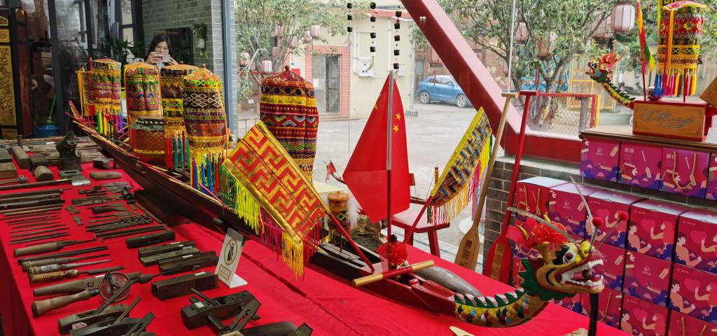 富裕幸福龙舟馆坐落在勒流街道富裕村,其龙舟仔制作技艺于2020年被列入佛山市顺德区第八批非物质文化遗产项目名录。展馆内陈列着主口刨、大凹槽等拥有百年历史的传统龙舟仔制作工具和做工精细、造型小巧的各式龙舟工艺品,龙舟文化在这里传承和创新发展,试图寻找古人精神与当下需求的连接点,让传统文化之下的传统产业,走出一条“出圈之路”。