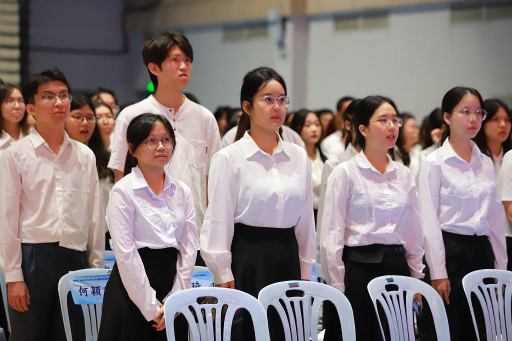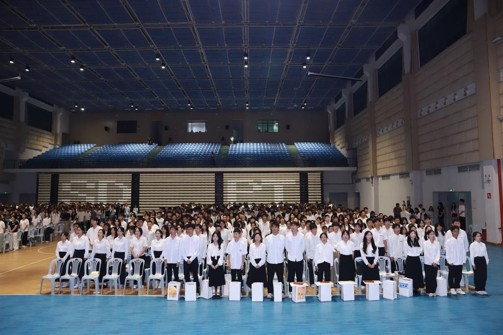 2023级学生代表何扬以“两年完成跨专业相沟通本科修读”的亲身经历,诠释了“自我塑造”的深刻内涵。她分享如何通过精准规划与主动学习,在药学与会计学双轨道上实现知识融通,展现了当代青年对多元能力的自觉追求。2025级新生代表农泳显则用“功崇惟志,业广惟勤”与全体同学共勉,表示将以使命驱动成长,用奋斗回应时代,在与母校的共同发展中实现人生价值。
