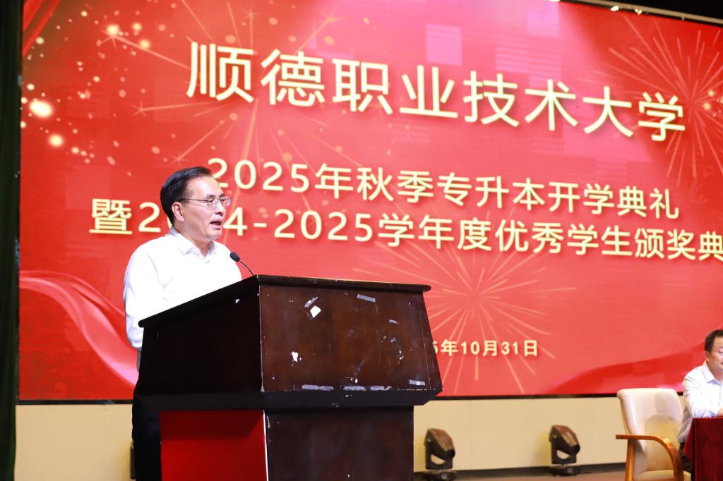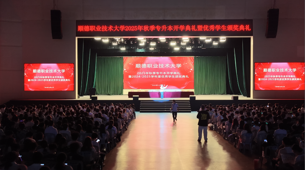 10月31日晚,我校2025年专升本开学典礼暨表彰大会在梁銶琚堂举行。华南理工大学继续教育学院副院长吴远东、广东财经大学继续教育学院党总支书记张政彪、深圳大学继续教育学院自学考试部主任李任,与我校副校长罗丹、各二级学院负责人、继续教育学院领导及968名专升本新生齐聚一堂,共同见证这一庄严时刻。典礼由继续教育学院副院长王明刚主持。