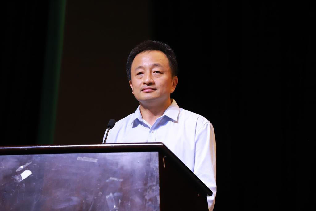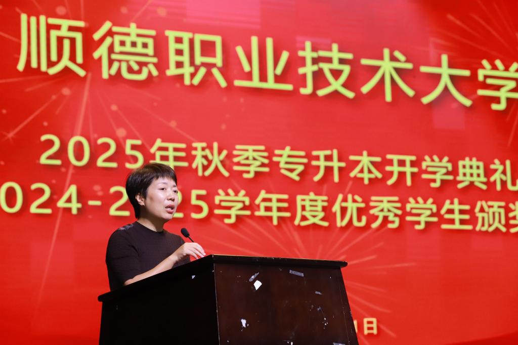 在雄壮的国歌声中,典礼拉开帷幕。罗丹以“在变革中坚守,在传承中创新”为主题,向新生致以殷切期望。她指出,在人工智能深刻重塑教育生态的今天,大学教育更应回归本源——培养具有历史眼光与未来视野的复合型人才。她鼓励学子通过深读经典,构建跨时空的思维框架,在技术洪流中保持人的主体性与创造力。“经典不是过去的回响,而是未来的预言”,罗丹寄语新生要以经典为舟、以实践为桨,在顺职大这片沃土上书写属于自己的时代答卷。