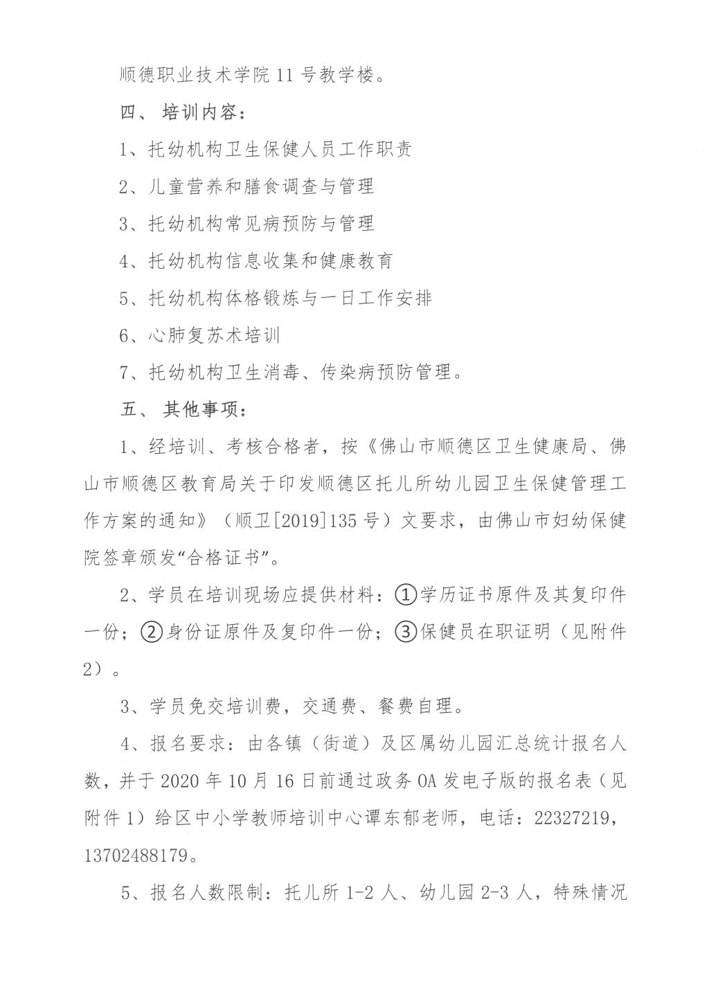 关于举办顺德区幼儿园(托儿所)保健员任职资格培训通知