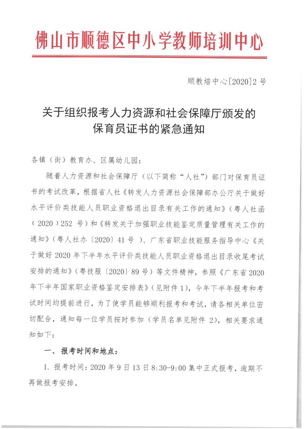 关于组织报考人力资源和社会保障厅颁发的保育员证书的紧急通知