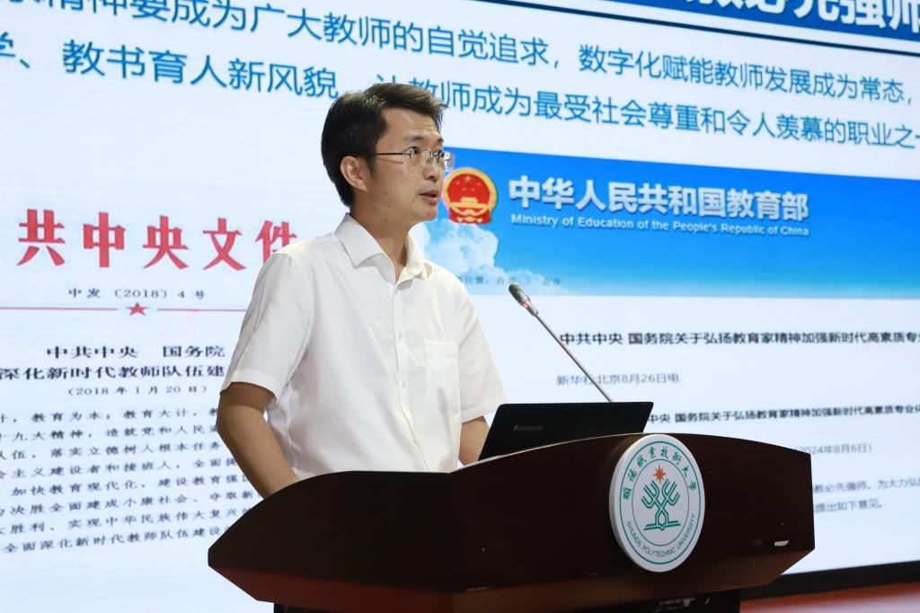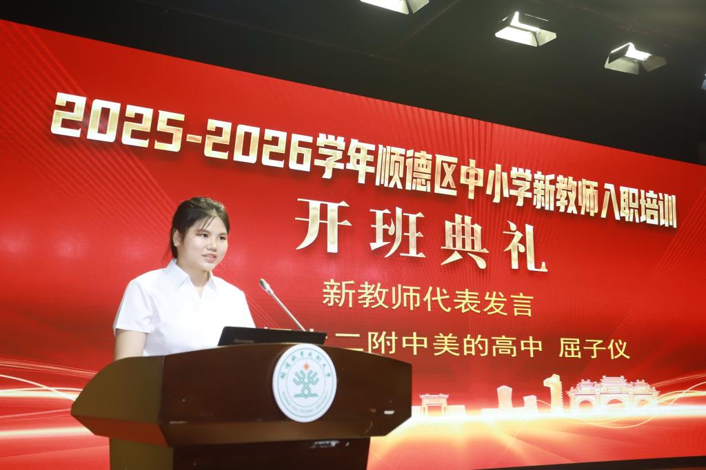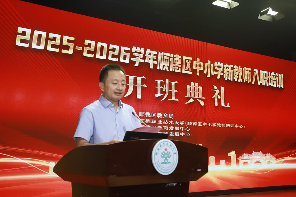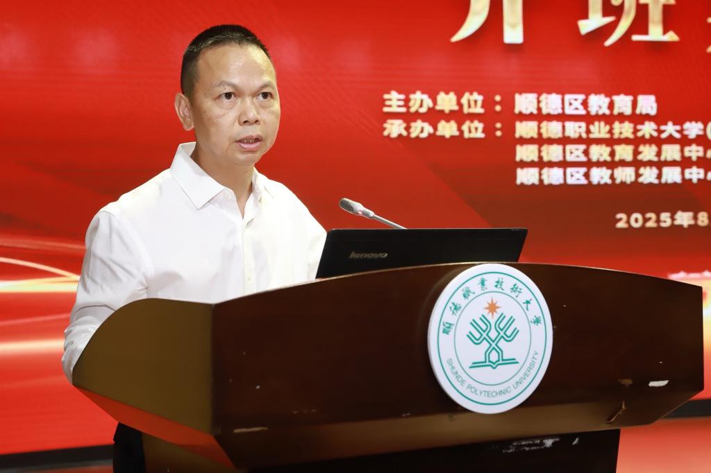典礼上,我校校领导练凌东致辞,指出自2015年我校依托继续教育学院挂牌“顺德区中小学教师培训中心”以来,已为全区近9000 名新教师提供职前培训。本次培训是“优师强师”引育行动的重要实践,旨在助力新教师“一年站稳讲台”,为顺德教育注入新活力。