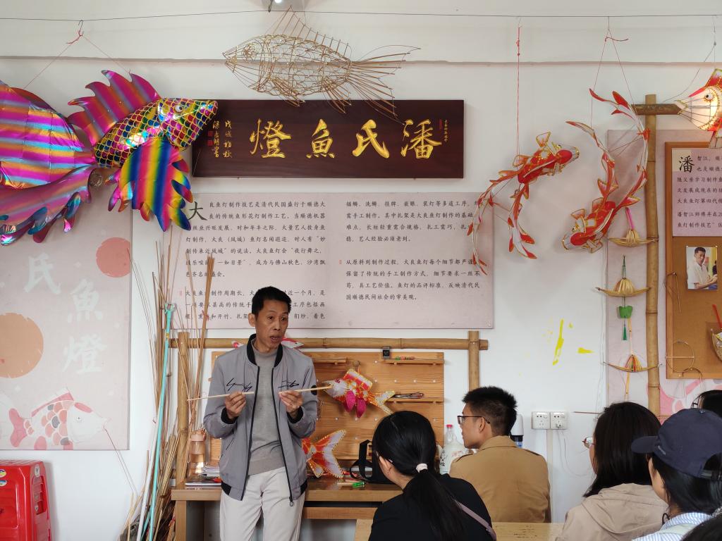 2025年11月26日,由中国教育工会佛山市顺德区委员会主办、顺德中小学教师培训中心协办的“2025顺德区新入职青年教师一日导赏活动”圆满举行。30名新教师通过非遗大师亲授、岭南园林探访、现代智造体验三大环节,深度感受顺德“非遗匠心”与“科技动能”的交融。活动特别邀请大良鱼灯非遗传承人潘智江、广绣非遗传承人曾剑琴和曾剑仑现场示范教学,让新教师们大呼“受益匪浅”,对顺德的归属感与日俱增。新教师们首站走进大良升平社区非遗工坊,在鱼灯与广绣的非遗课堂中开启文化寻根之旅。潘智江师傅从事大良鱼灯制作40余年,他手持竹篾,一边演示“弯折定型”的核心技法,一边讲述大良鱼灯制作技艺的独特之处。“原来一条灵动的鱼灯背后,需要数十道手工工序,还需要长达半年、一年的时间才能完成制作,这真是匠心之道。”参与体验的新老师感慨道。
